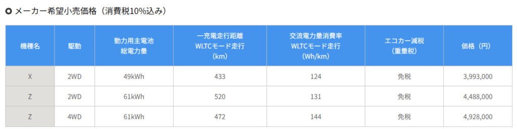 「Emotional Versatile Cruiser」を商品コンセプトにし、BEVの先進感とSUVの力強さを併せ持つデザイン、BEVらしいキビキビとしたシャープな走りを実現するBEVパワートレイン、悪路での走破性のみならず、よりパワフルな走りを実現する電動4WD「ALLGRIP-e」、BEV専用に新開発したプラットフォーム「HEARTECT-e」を採用したSUV。