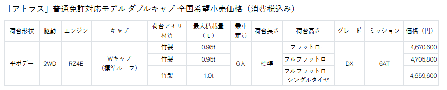 新着ニュース「アトラス 普通免許対応モデル」にダブルキャブを追加設定