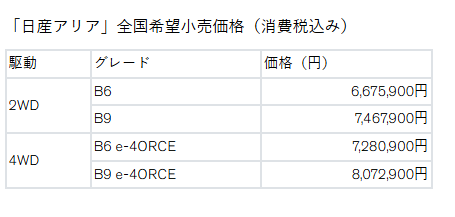 「日産アリア」WEBカタログ https://www3.nissan.co.jp/vehicles/new/ariya.html