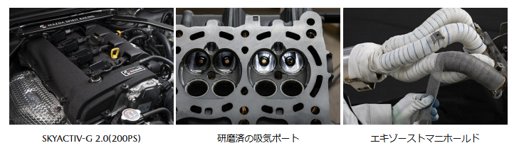 ・「MAZDA SPIRIT RACING ROADSTER 12R」では高回転域での伸びやかな加速にフォーカスし、最高出力を200PS*3まで向上。