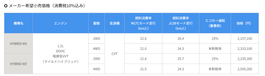 ・スイフトやソリオに搭載しているZ12E型エンジンとCVTを採用しました。燃費性能を高め、全車エコカー減税の対象※7となる。