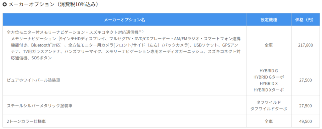 ※2 全方位モニター付メモリーナビゲーション・スズキコネクト対応通信機装着車としてメーカーオプション設定。