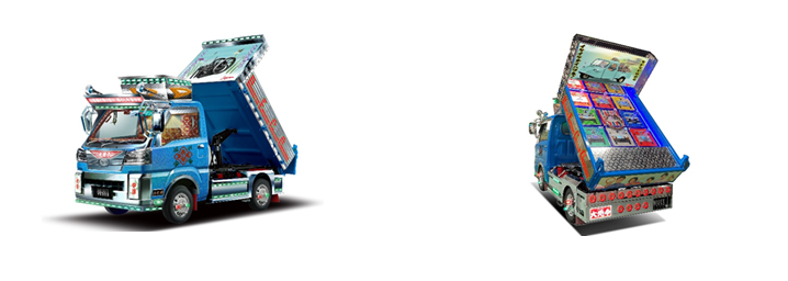 ➊ 「世代を超えて、人の輪を繋いで笑顔に。暮らしをおもろく、お客様を元気にしたい」との想いを込めた「ハイゼット トラック PTO ダンプ 大発命(ダイハツメイ)」