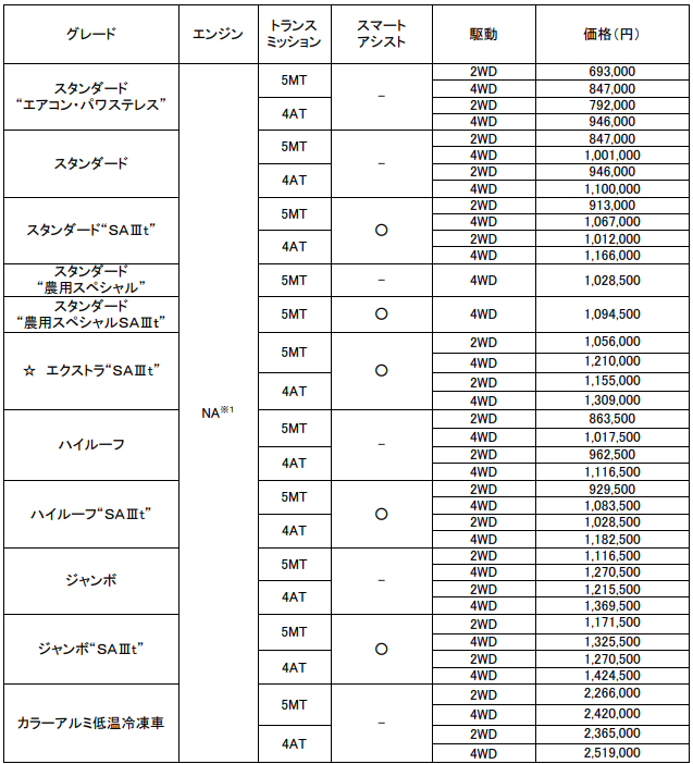 ・スマートアシストⅢt 付グレードにLEDヘッドランプを標準装備(ジャンボは従来からLEDヘッド