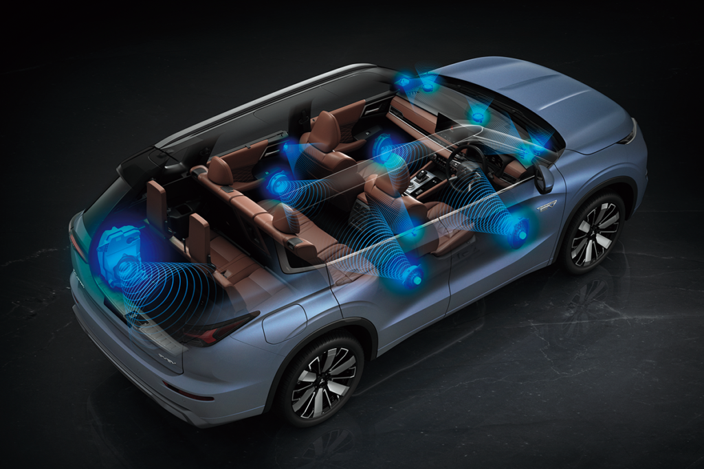 ヤマハと三菱自動車が『アウトランダーPHEV』専用に共同で開発したオーディオシステム「Dynamic Sound Yamaha Ultimate(ダイナミック サウンド ヤマハ アルティメット)」/「Dynamic Sound Yamaha Premium(ダイナミック サウンド ヤマハ プレミアム)」は、アーティストの息遣いまでも再現する、クリアで高い解像度の中高音やリアルな音へのこだわりを追求している。また、スピーカーを搭載しているドアパネルの隙間を塞いでスピーカーボックスの役割を与えるとともに、スピーカー取付部の剛性も向上することで不要なノイズの発生を低減。それにより、太く躍動感のある低音を実現している。