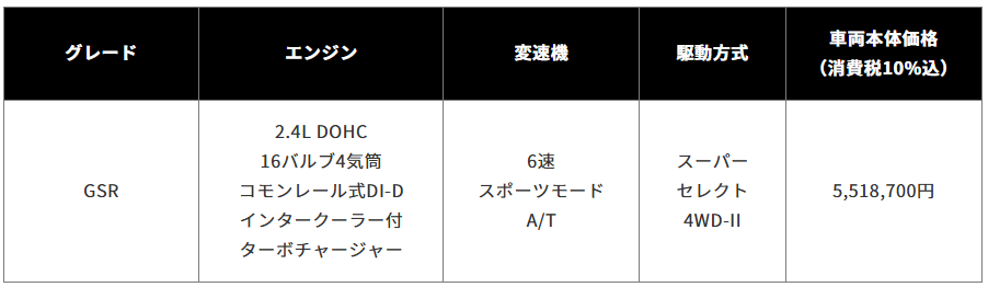 ・GSRグレードのみの設定にするとともに、カスタマイズの自由度向上のため、スタイリングバーの設定を廃止した。