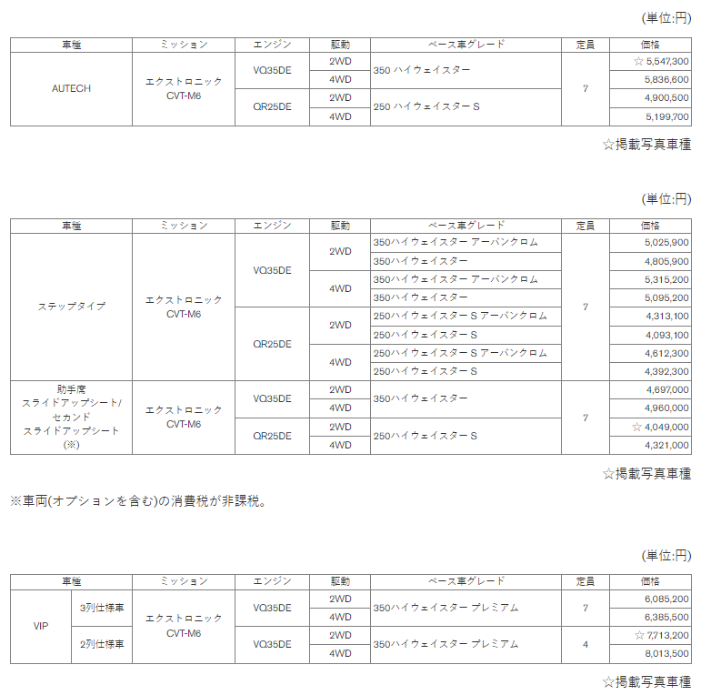 新着ニュース日産モータースポーツ&カスタマイズ株式会社「エルグランド」をベースにしたカスタムカー「AUTECH」、福祉車両「ライフケアビークル(LV)*1」シリーズ、ならびに、エグゼクティブ向けの特別仕様車「VIP」を一部仕様向上
