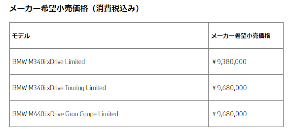 ・BMW M340i xDrive、BMW M340i xDrive Touring、BMW M440i xDrive Gran Coupeに
