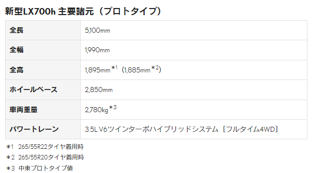 新型LXの主な特徴