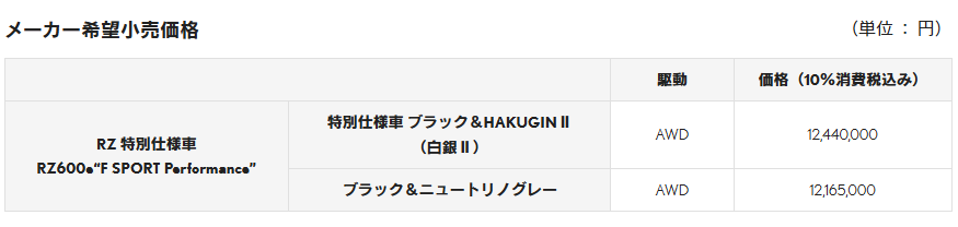 新着ニュースLEXUS、バッテリーEV専用モデル「RZ」にRZ 特別仕様車 RZ600e“F SPORT Performance”を設定