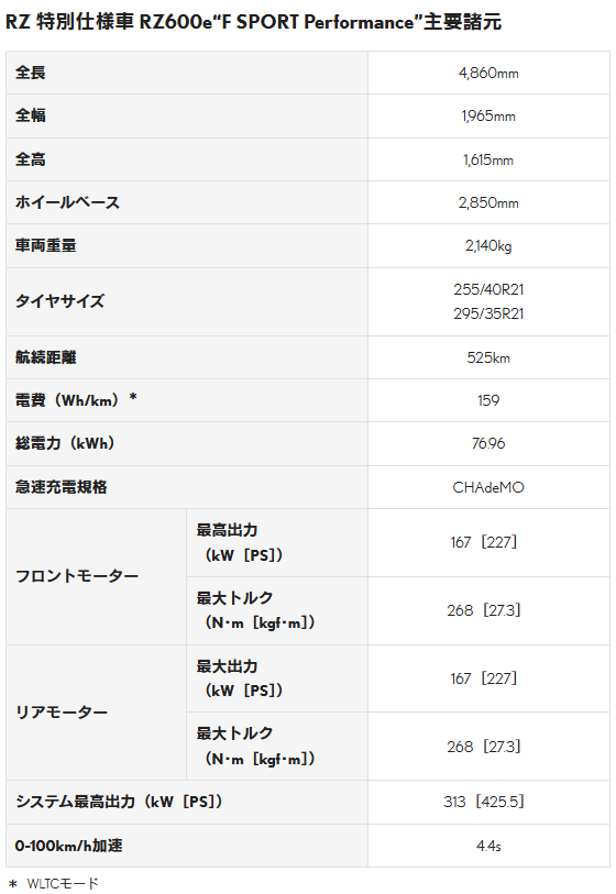 RZ 特別仕様車 RZ600e“F SPORT Performance”の主な特別装備