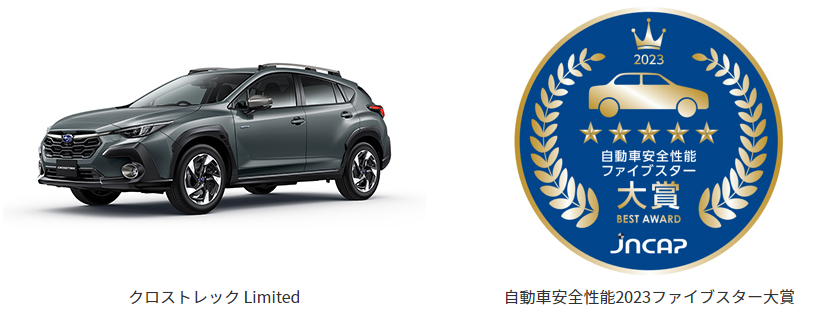 このたび、国土交通省と独立行政法人 自動車事故対策機構(NASVA*1)が実施した、自動車の安全性能を比較評価する自動車アセスメント(JNCAP*2)において、SUBARU「クロストレック」・「インプレッサ」が2023年度の衝突安全性能と予防安全性能の総合評価で最高得点*3を獲得し、「自動車安全性能2023ファイブスター*4大賞*5」を受賞した。